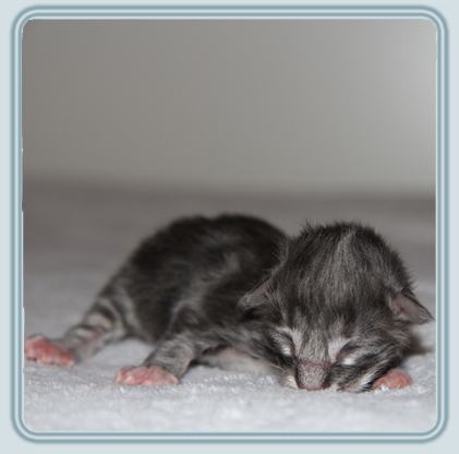 While doing alterations in the pen of the boys we removed the tunnel that gives them access to the front of the house so they are able to see birds while they are there. On the 5th of April Munchkin forced his way out of his secure area and appeared in one of the bedrooms as if the weather is fine windows are open until we give the boys their time in the garden. As he appeared peacefully sleeping in a bed and only Erin was in the wardrobe at the time (room was shut) and she was "not calling" we didn't think it was a problem ..... A few weeks and after a call Erin started to look a bit big and we decided take her for an ultrasound....well yesterday we welcomed to the world five big and healthy kittens in what it must be our "surprise surprise" litter.